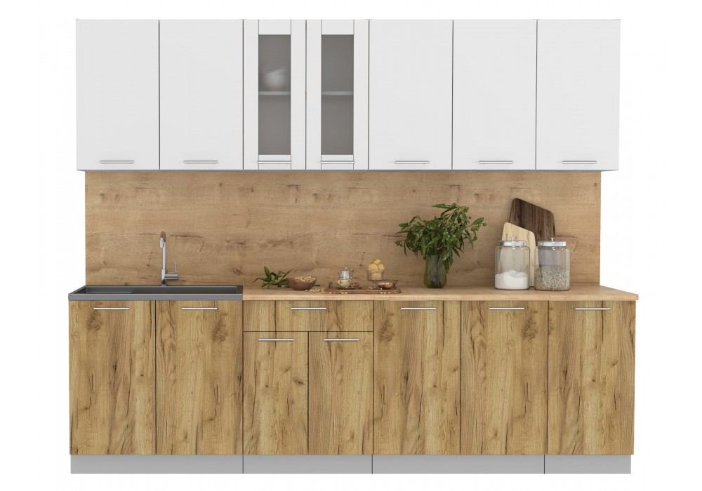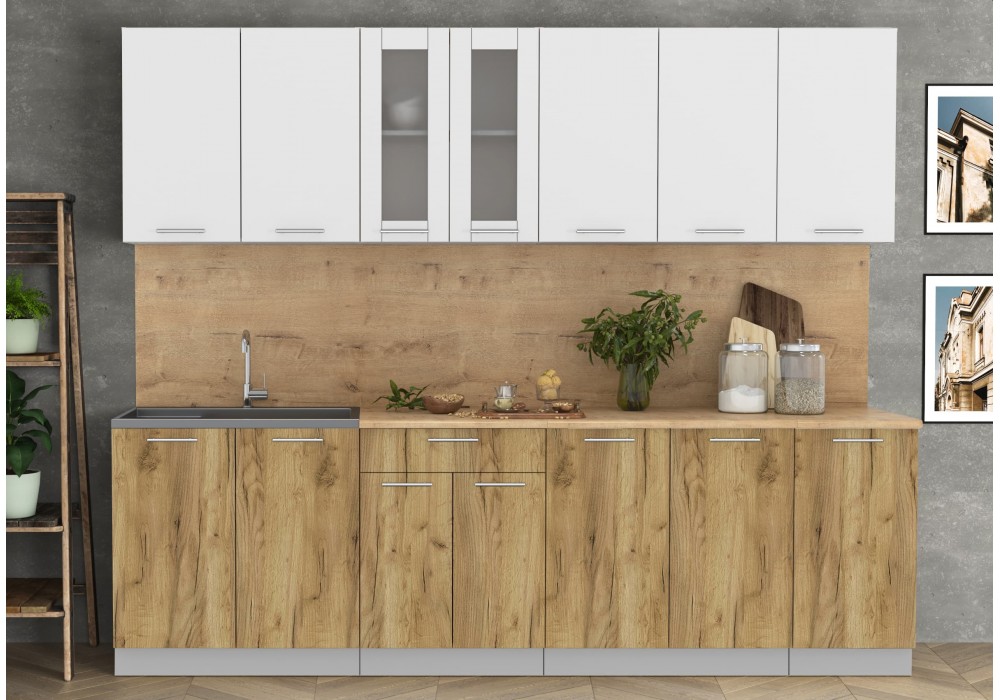 Кухонный гарнитур Мила 2,6 м (Белый Платинум/Дуб золотой) фабрика Интерлиния