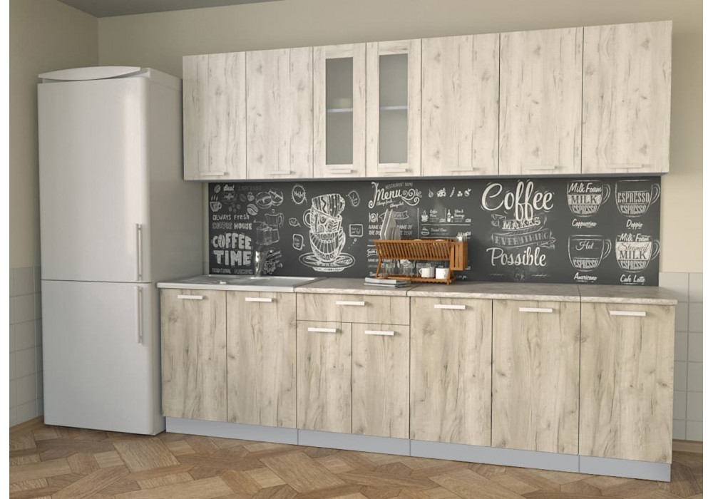 Кухонный гарнитур Мила 2,6 м (Дуб белый/Дуб серый) фабрика Интерлиния