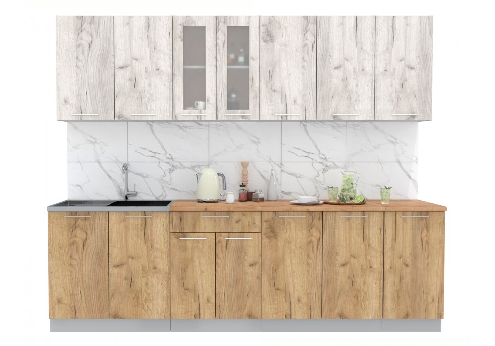 Кухонный гарнитур Мила 2,6 м (Дуб белый/Дуб золотой) фабрика Интерлиния