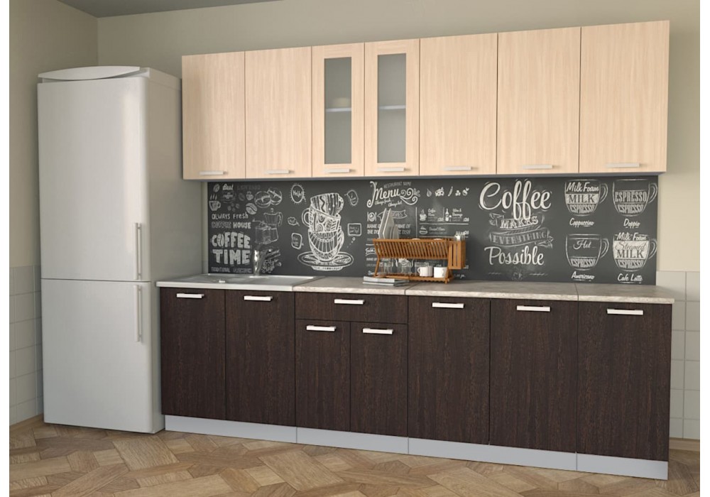 Кухонный гарнитур Мила 2,6 м (Дуб молочный/Дуб венге) фабрика Интерлиния