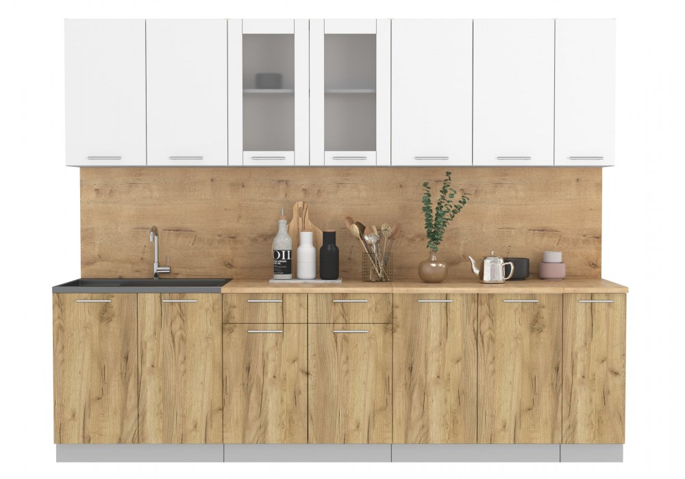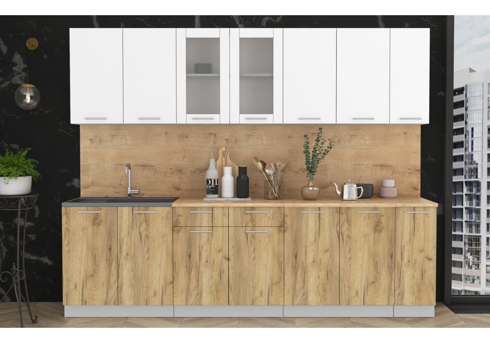 Кухонный гарнитур Мила 2,7 м (Белый Платинум/Дуб золотой) фабрика Интерлиния