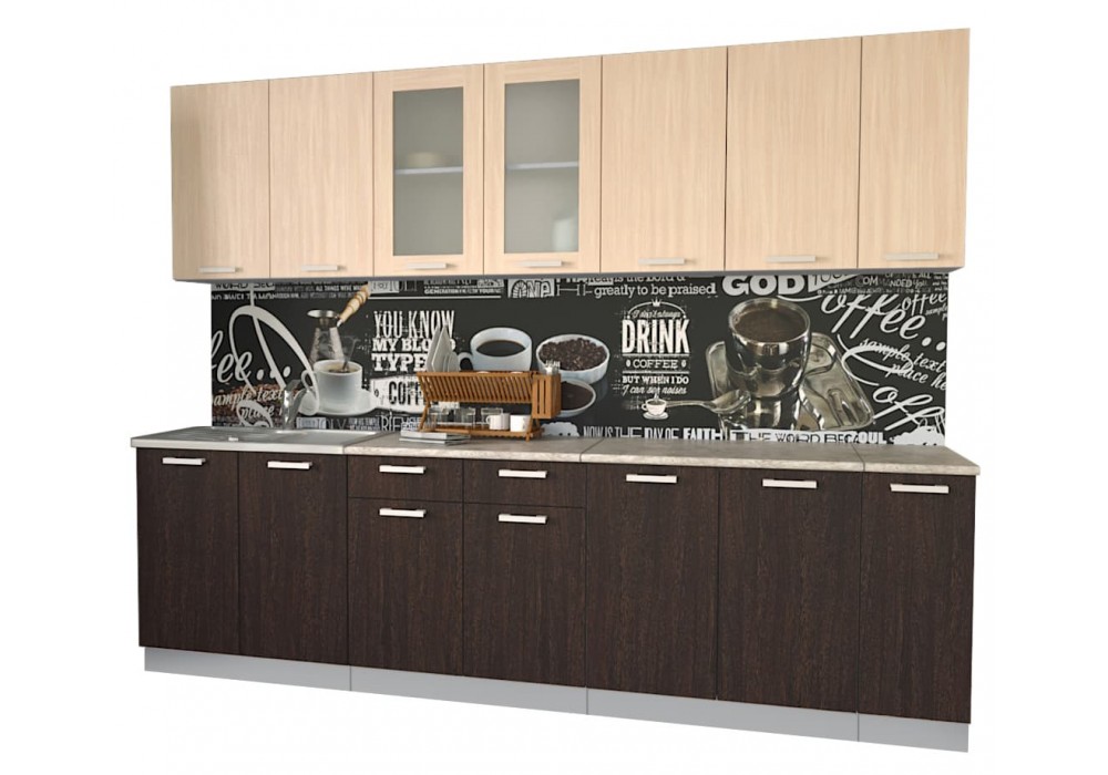 Кухонный гарнитур Мила 2,7 м (Дуб молочный/Дуб венге) фабрика Интерлиния