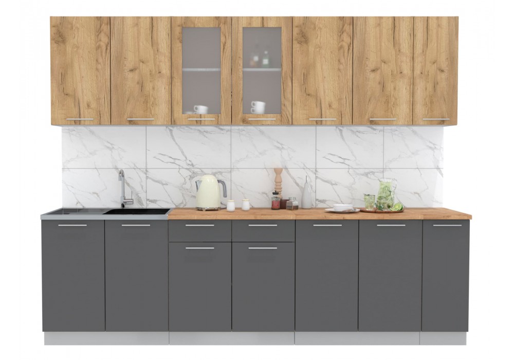 Кухонный гарнитур Мила 2,7 м (Дуб золотой/Антрацит) фабрика Интерлиния