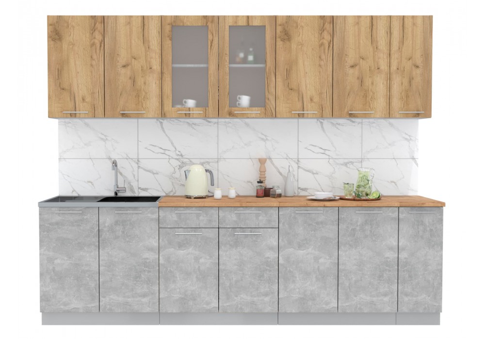 Кухонный гарнитур Мила 2,7 м (Дуб золотой/Бетон) фабрика Интерлиния