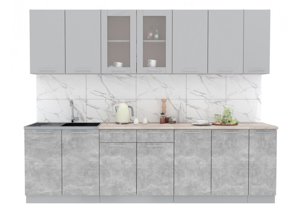 Кухонный гарнитур Мила 2,7 м (Серебро/Бетон) фабрика Интерлиния