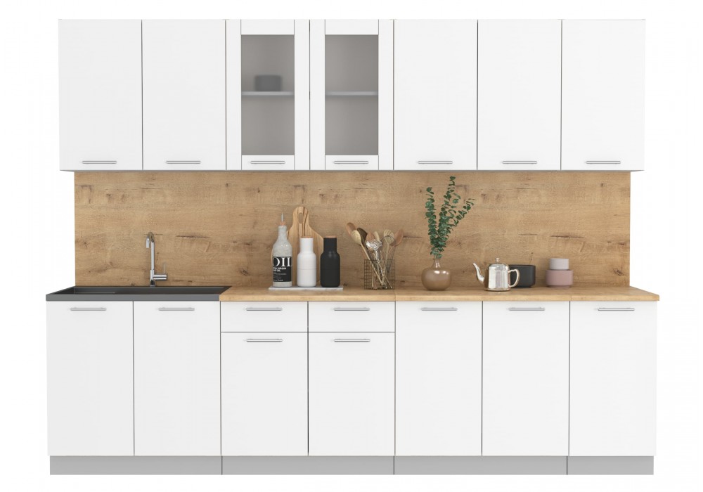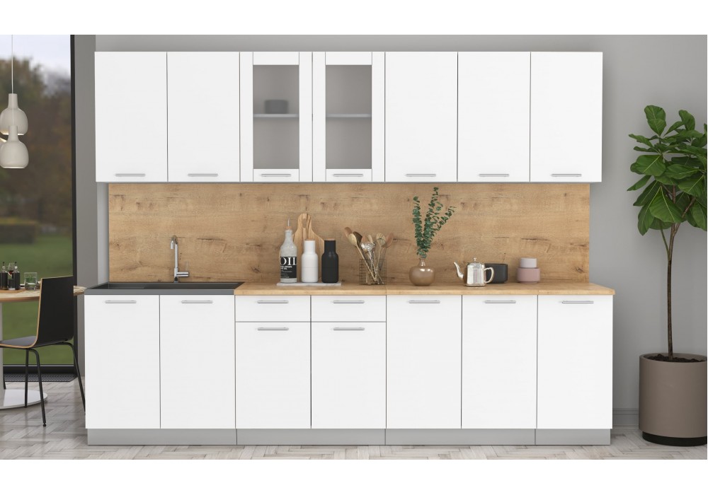 Кухонный гарнитур Мила 2,8 м (Белый Платинум/Белый Платинум) фабрика Интерлиния