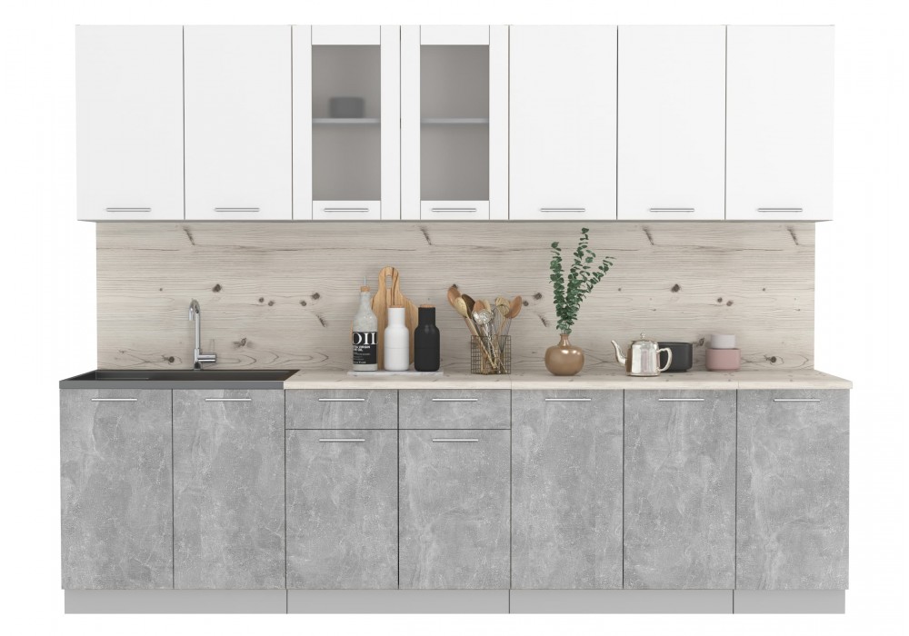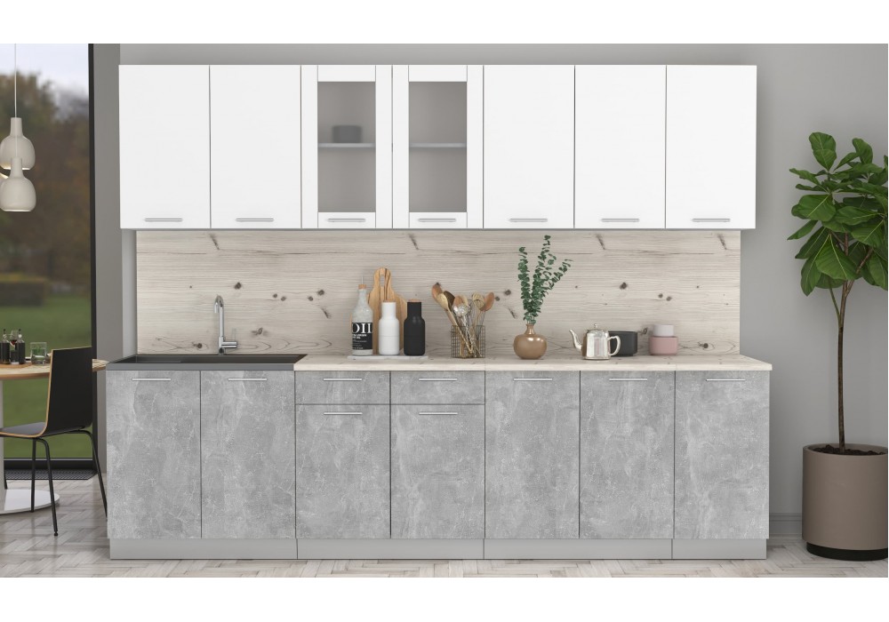 Кухонный гарнитур Мила 2,8 м (Белый Платинум/Бетон) фабрика Интерлиния