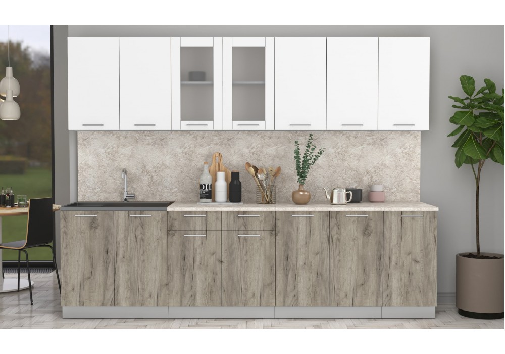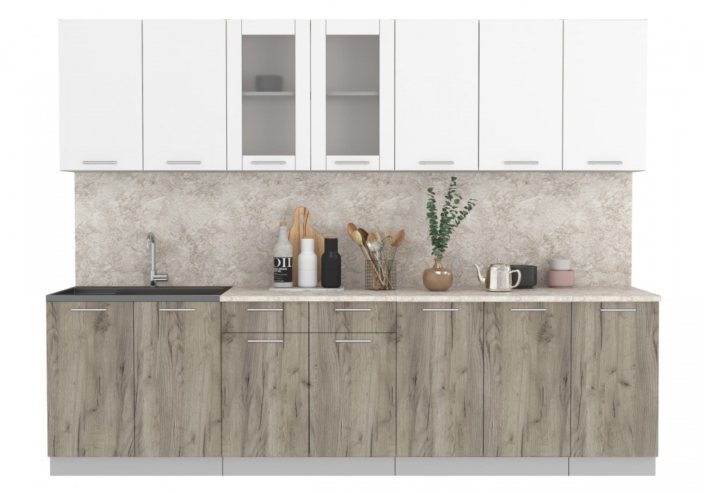 Кухонный гарнитур Мила 2,8 м (Белый Платинум/Дуб серый) фабрика Интерлиния