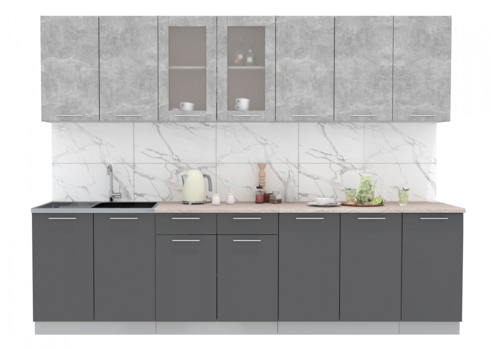 Кухонный гарнитур Мила 2,8 м (Бетон/Антрацит) фабрика Интерлиния