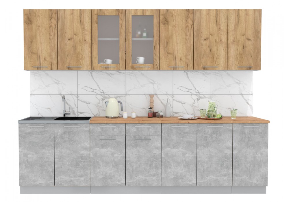 Кухонный гарнитур Мила 2,8 м (Дуб золотой/Бетон) фабрика Интерлиния