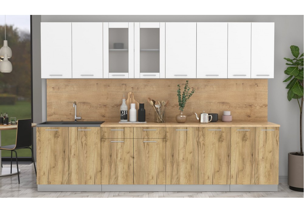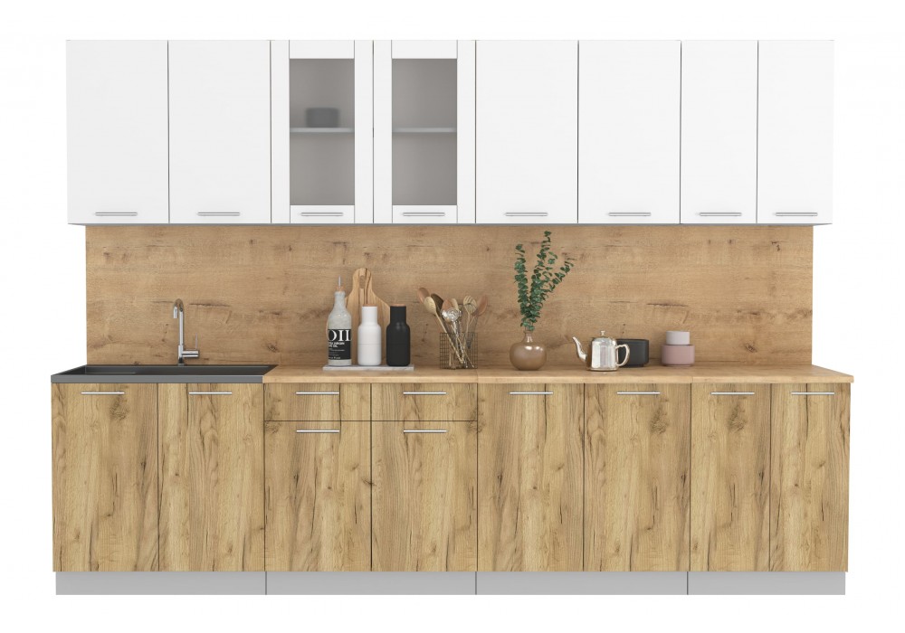 Кухонный гарнитур Мила 3,0 м (Белый Платинум/Дуб золотой) фабрика Интерлиния