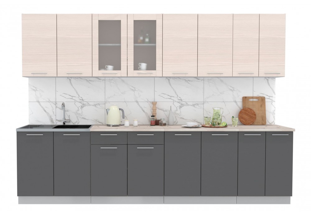 Кухонный гарнитур Мила 3,0 м (Вудлайн кремовый/Антрацит) фабрика Интерлиния