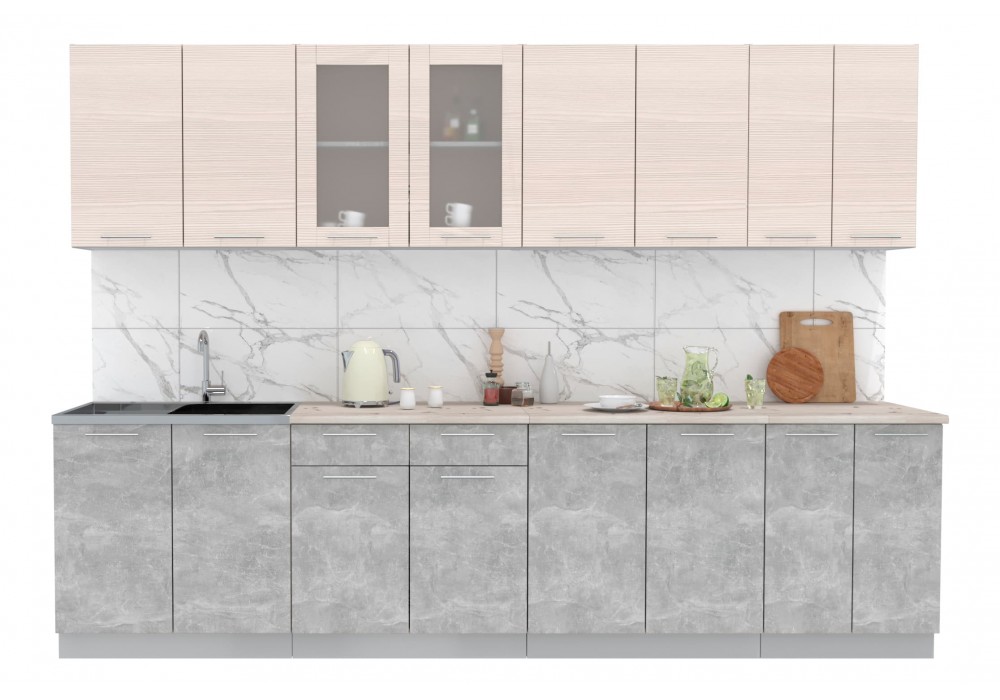 Кухонный гарнитур Мила 3,0 м (Вудлайн кремовый/Бетон) фабрика Интерлиния