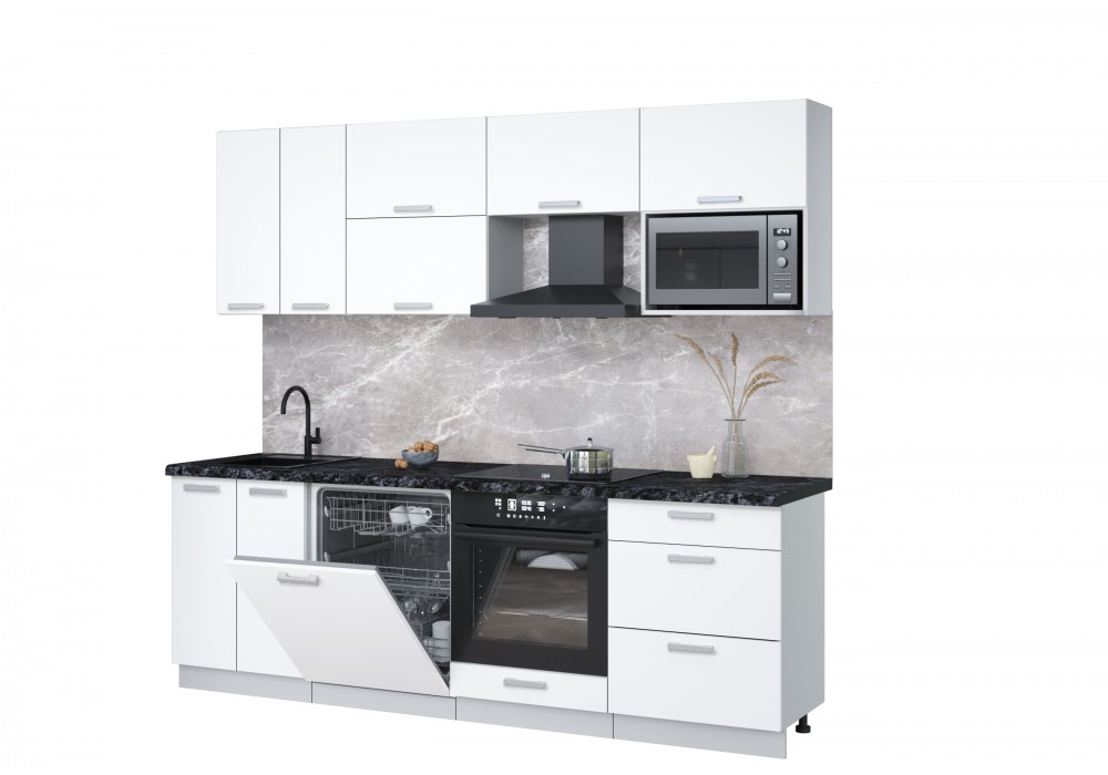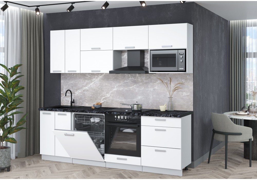 Кухонный гарнитур Мила Лайт 2,4-ПМ2 (Белый Платинум/Белый Платинум/Кастилло темный) фабрика Интерлиния