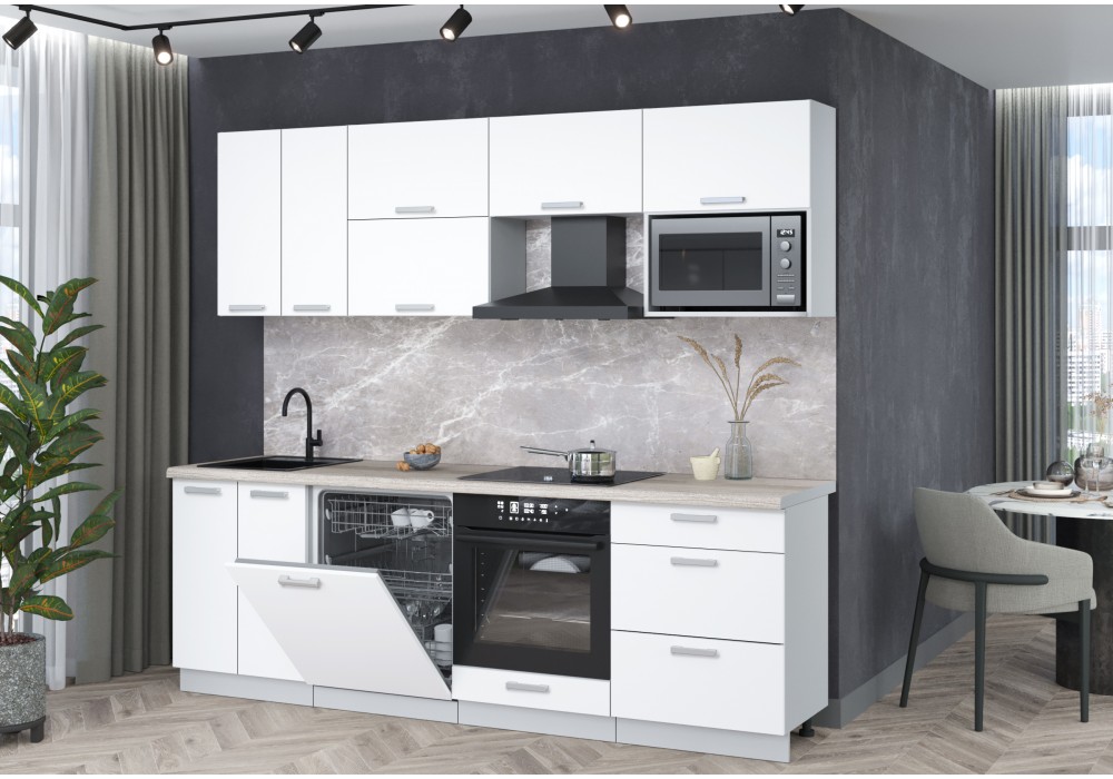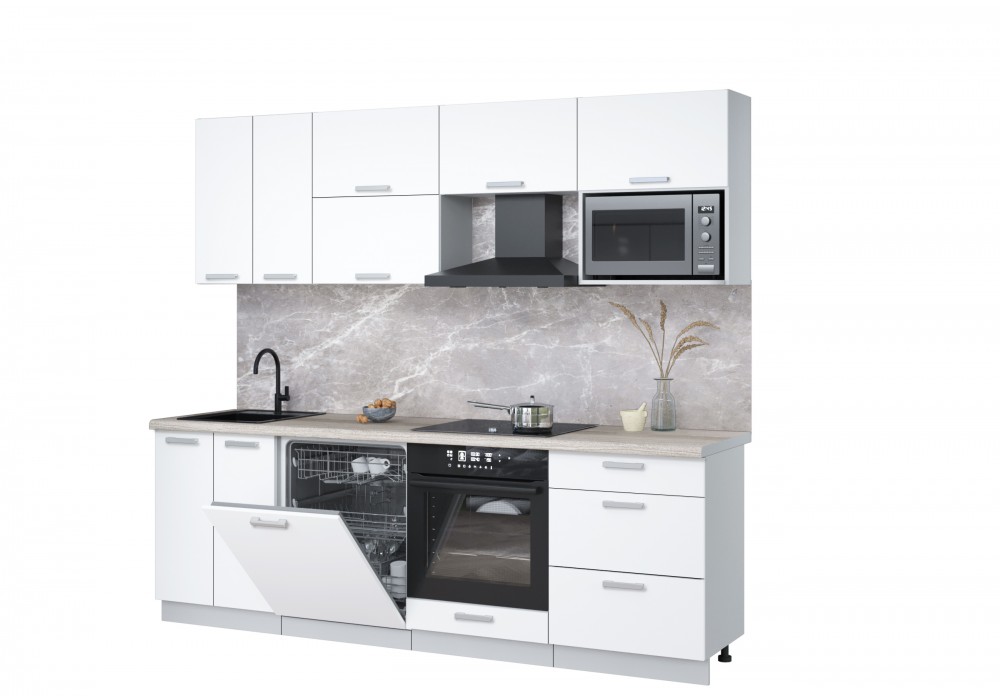 Кухонный гарнитур Мила Лайт 2,4-ПМ2 (Белый Платинум/Белый Платинум/Травертин) фабрика Интерлиния
