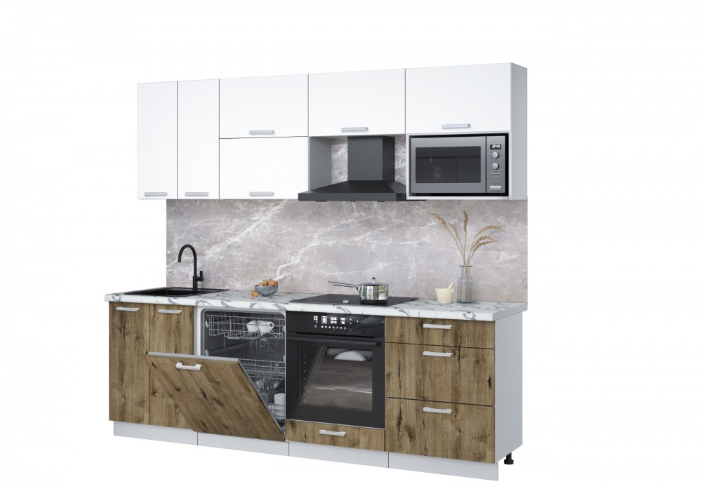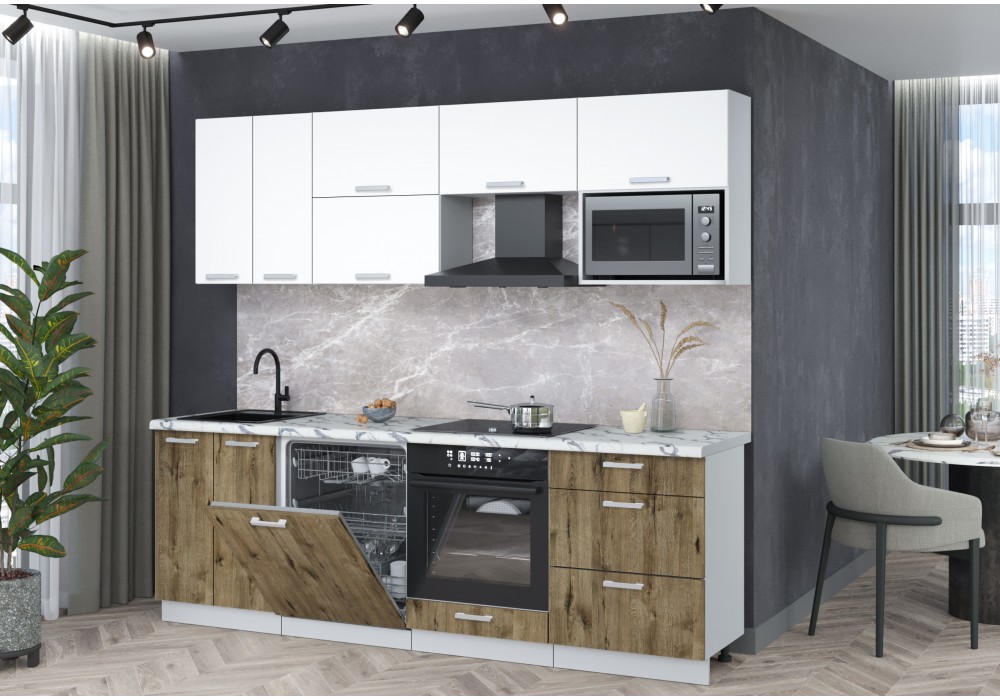 Кухонный гарнитур Мила Лайт 2,4-ПМ2 (Белый Платинум/Дуб веллингтон/Гранит белый) фабрика Интерлиния