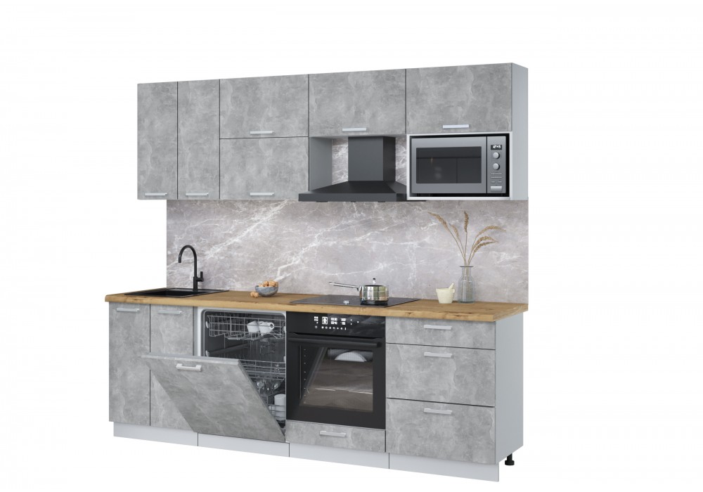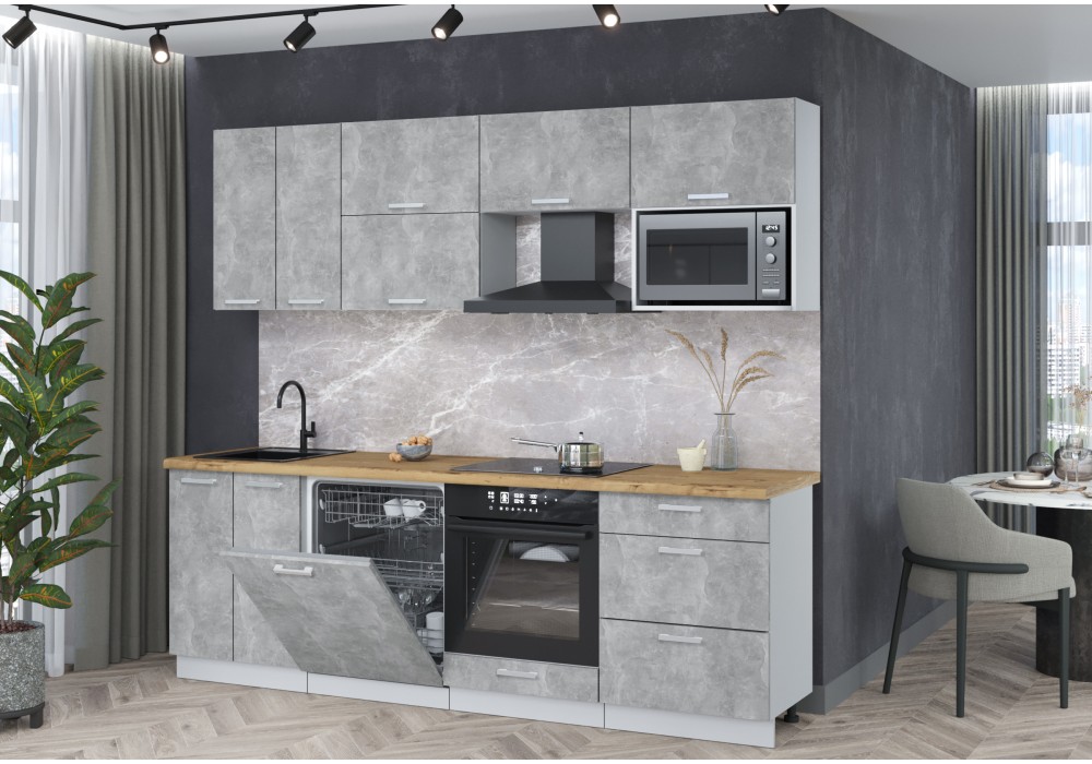 Кухонный гарнитур Мила Лайт 2,4-ПМ2 (Бетон/Бетон/Дуб бунратти) фабрика Интерлиния