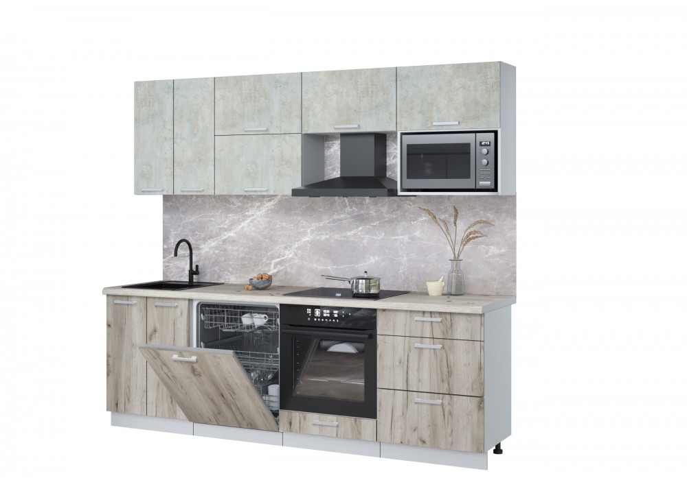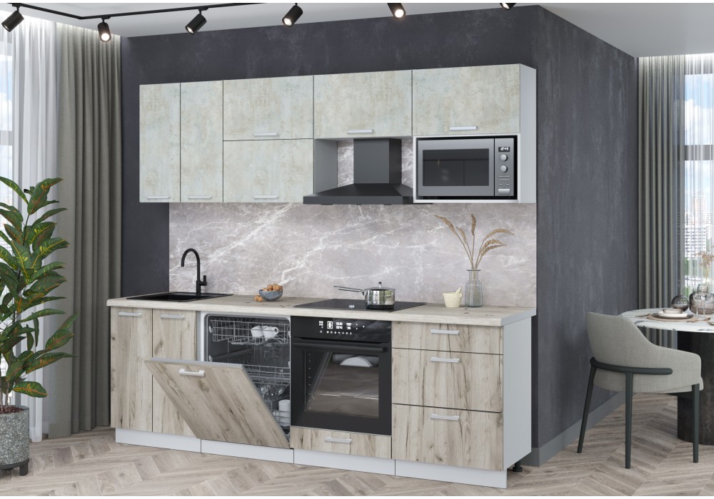 Кухонный гарнитур Мила Лайт 2,4-ПМ2 (Бетон лайт/Дуб серый/Сосна бискайская) фабрика Интерлиния
