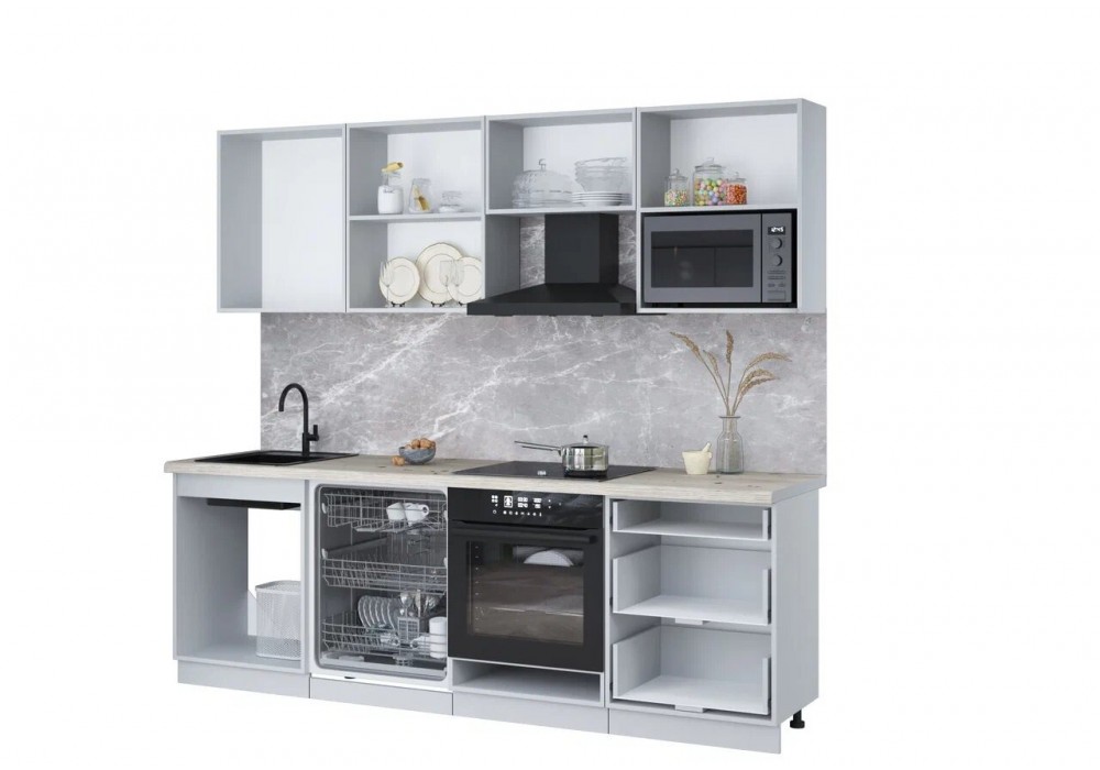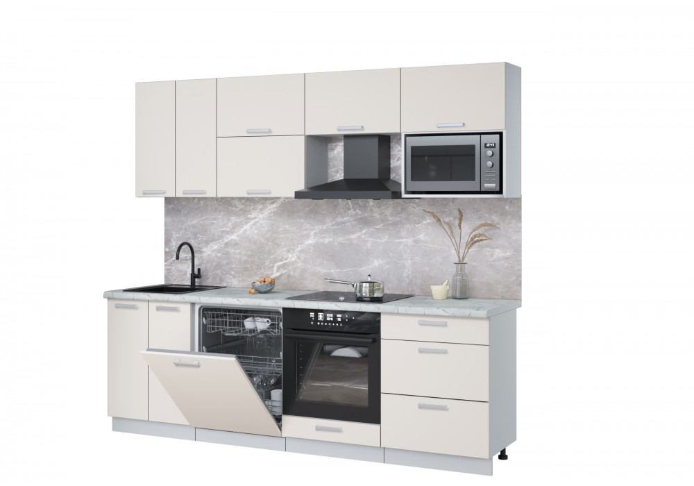 Кухонный гарнитур Мила Лайт 2,4-ПМ2 (Персидский жемчуг/Персидский жемчуг/Серый каспий) фабрика Интерлиния