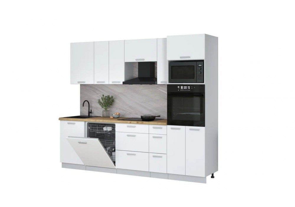 Кухонный гарнитур Мила Лайт 2,6-ПМ1 (Белый Платинум/Белый Платинум/Дуб бунратти) фабрика Интерлиния