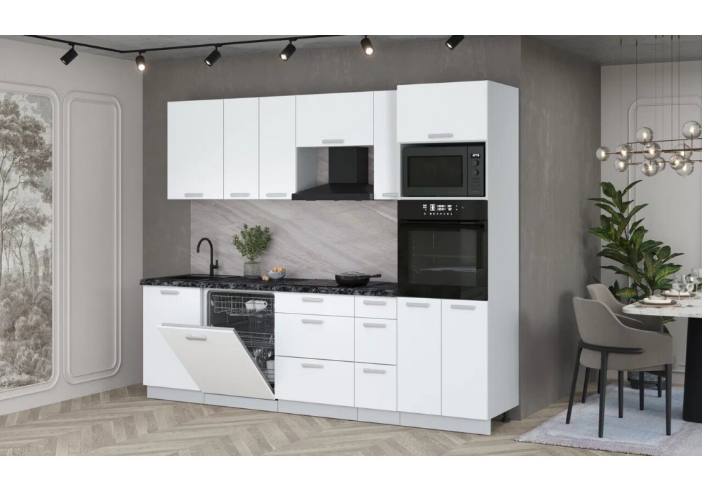 Кухонный гарнитур Мила Лайт 2,6-ПМ1 (Белый Платинум/Дуб серый/Гранит белый) фабрика ИнтерлинияКухонная мойка и бытовая т..