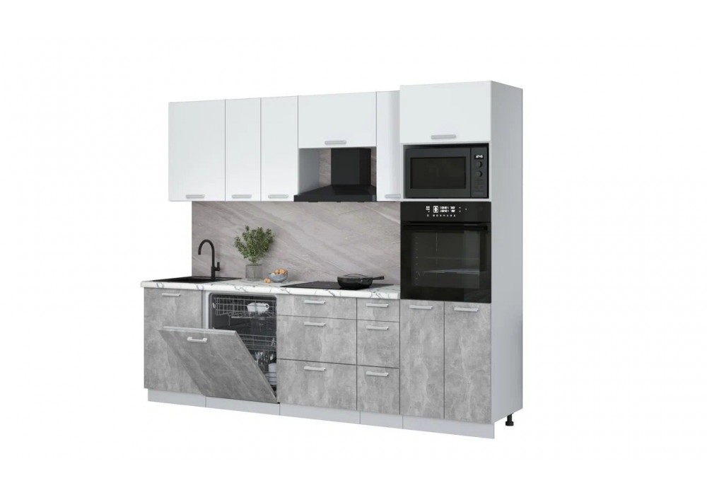 Кухонный гарнитур Мила Лайт 2,6-ПМ1 (Белый Платинум/Бетон/Гранит белый) фабрика Интерлиния