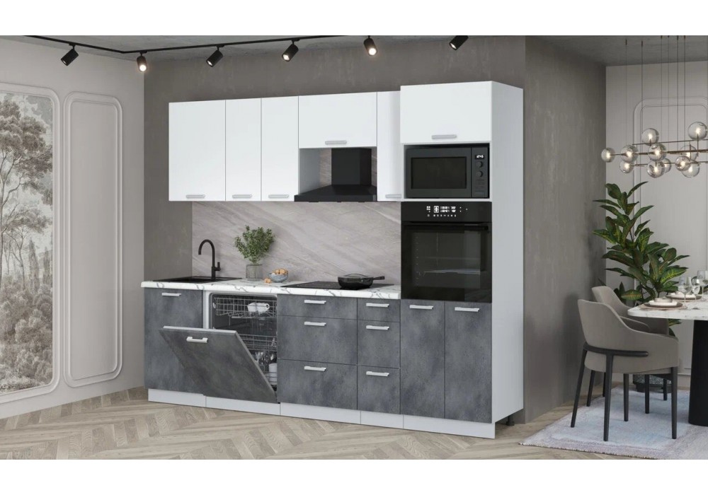 Кухонный гарнитур Мила Лайт 2,6-ПМ1 (Белый Платинум/Бетон портленд/Гранит белый) фабрика Интерлиния