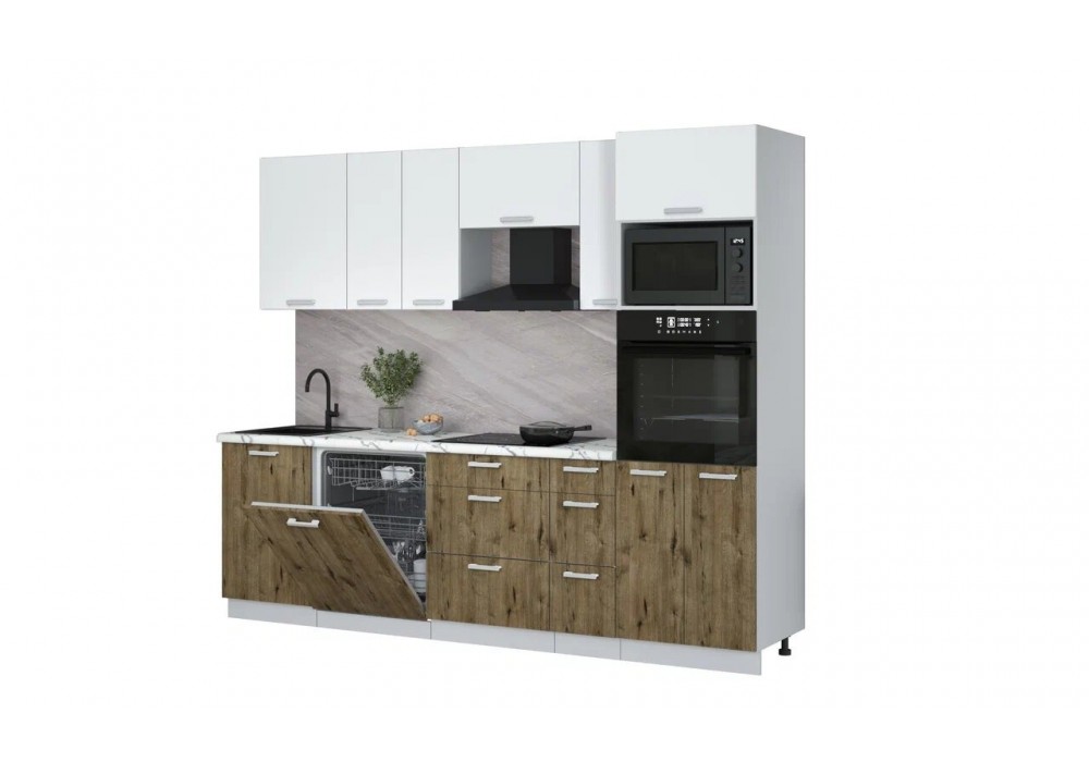 Кухонный гарнитур Мила Лайт 2,6-ПМ1 (Белый Платинум/Дуб Веллингтон/Гранит белый) фабрика Интерлиния