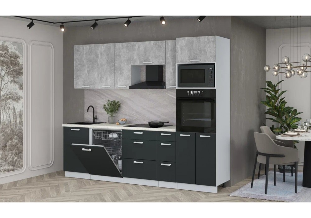 Кухонный гарнитур Мила Лайт 2,6-ПМ1 (Бетон/Антрацит/Опал светлый) фабрика Интерлиния