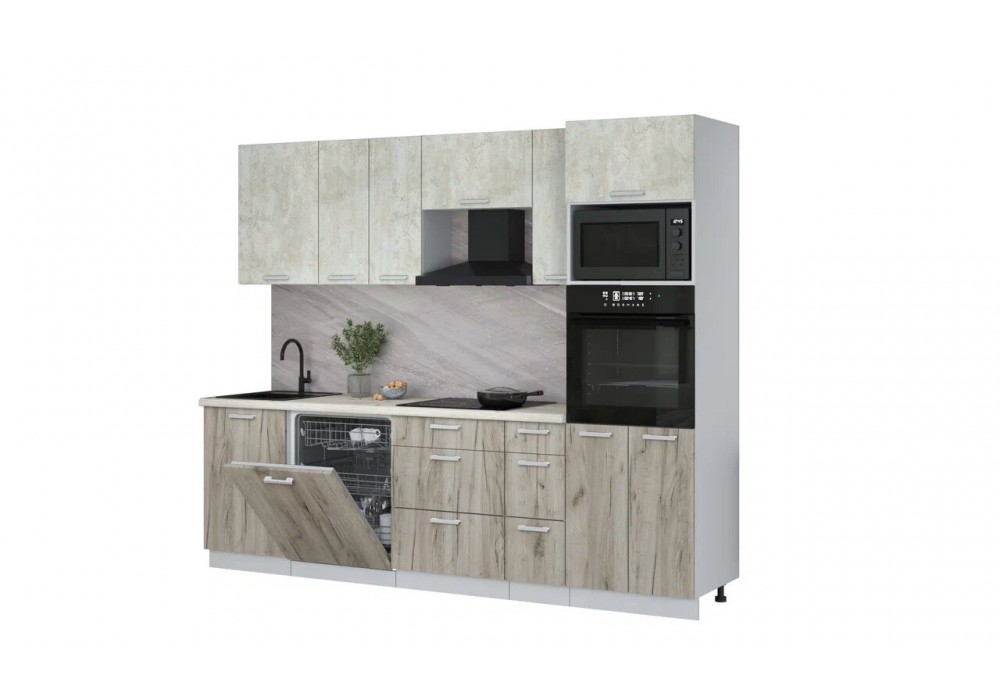 Кухонный гарнитур Мила Лайт 2,6-ПМ1 (Бетон лайт/Дуб серый/Сосна бискайская) фабрика Интерлиния