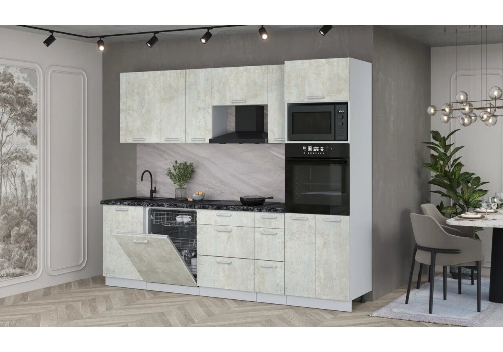 Кухонный гарнитур Мила Лайт 2,6-ПМ1 (Бетон лайт/Бетон Портленд/Гранит белый) фабрика ИнтерлинияКухонная мойка и бытовая ..