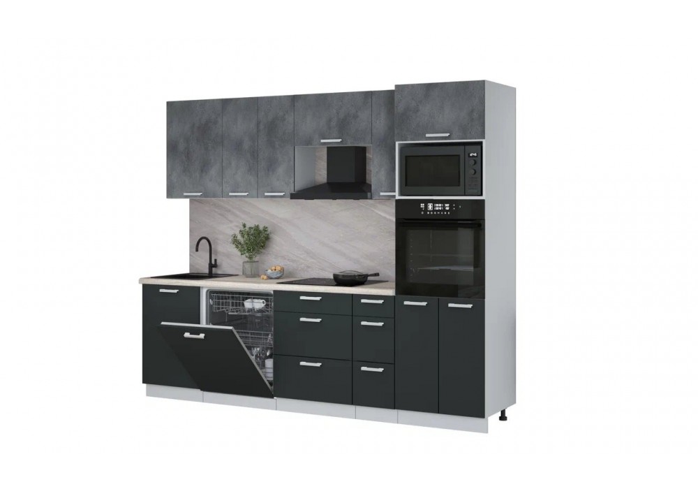 Кухонный гарнитур Мила Лайт 2,6-ПМ1 (Бетон Портленд/Антрацит/Травертин) фабрика Интерлиния