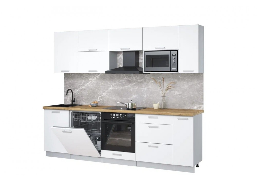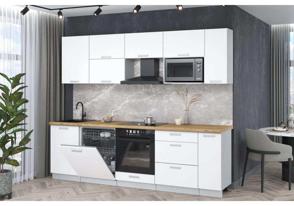 Кухонный гарнитур Мила Лайт 2,6-ПМ2 (Белый Платинум/Белый Платинум/Дуб бунратти) фабрика Интерлиния
