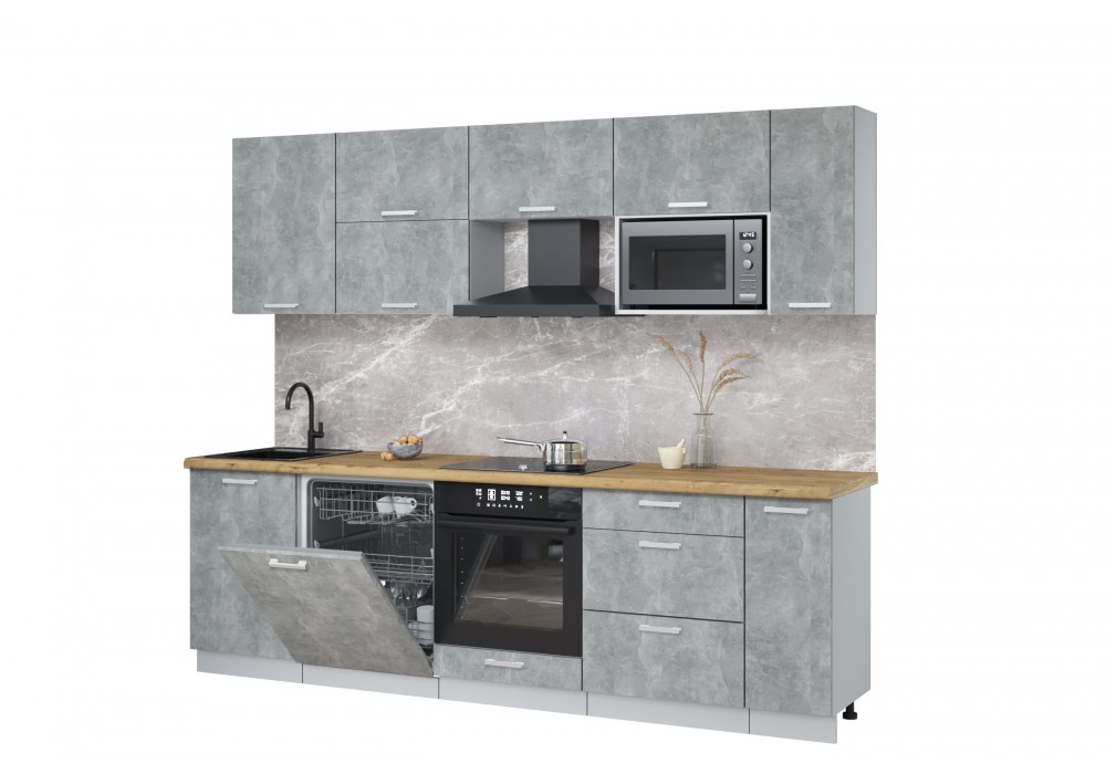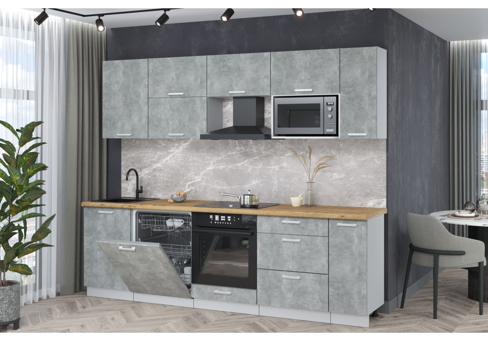 Кухонный гарнитур Мила Лайт 2,6-ПМ2 (Бетон/Бетон/Дуб бунратти) фабрика Интерлиния
