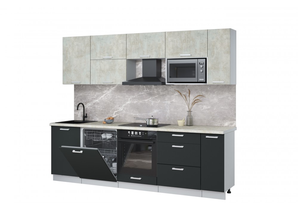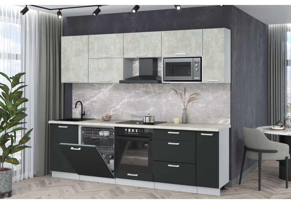 Кухонный гарнитур Мила Лайт 2,6-ПМ2 (Бетон лайт/Антрацит/Опал светлый) фабрика Интерлиния
