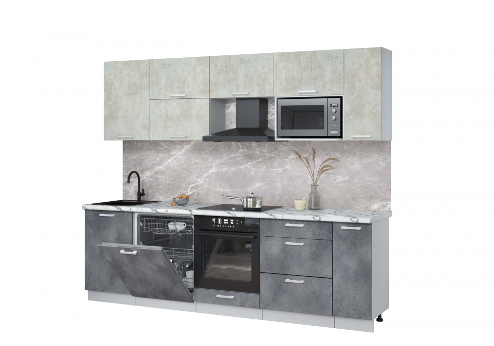 Кухонный гарнитур Мила Лайт 2,6-ПМ2 (Бетон лайт/Бетон портленд/Гранит белый) фабрика Интерлиния