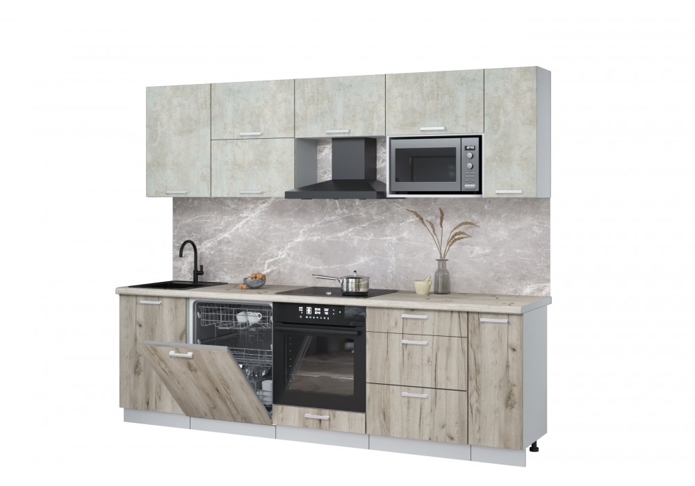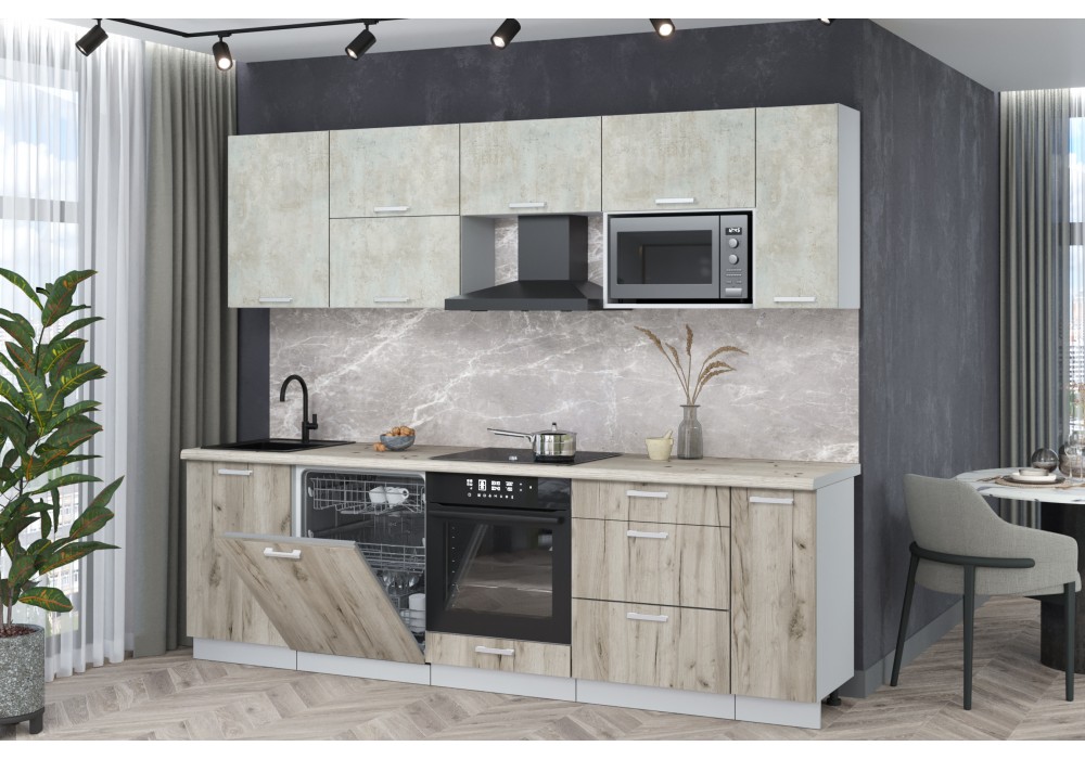 Кухонный гарнитур Мила Лайт 2,6-ПМ2 (Бетон лайт/Дуб серый/Сосна бискайская) фабрика Интерлиния