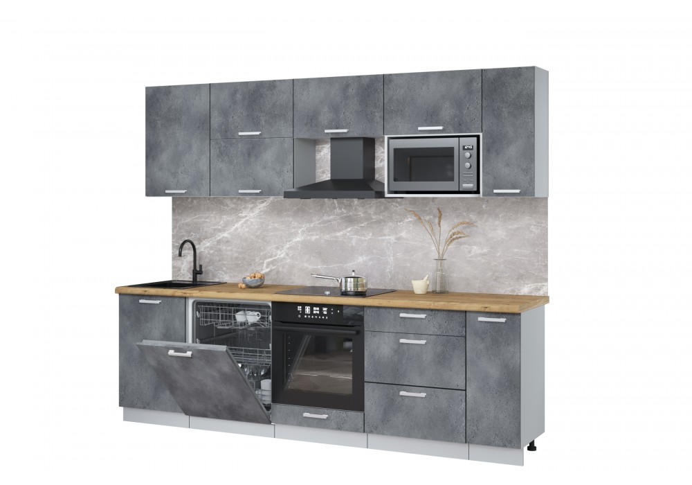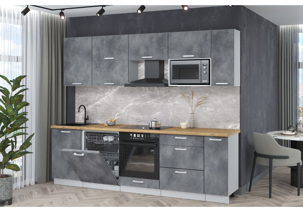 Кухонный гарнитур Мила Лайт 2,6-ПМ2 (Бетон портленд/Бетон портленд/Дуб бунратти) фабрика Интерлиния