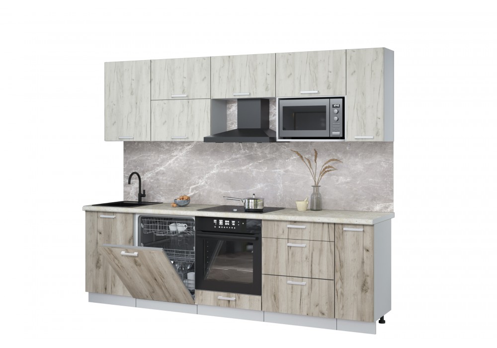 Кухонный гарнитур Мила Лайт 2,6-ПМ2 (Дуб белый/Дуб серый/Опал светлый) фабрика Интерлиния