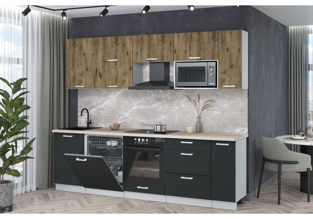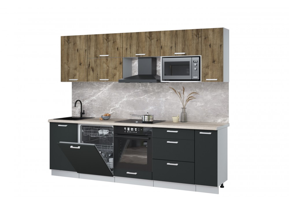 Кухонный гарнитур Мила Лайт 2,6-ПМ2 (Дуб веллингтон/Антрацит/Травертин) фабрика Интерлиния