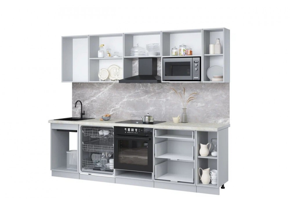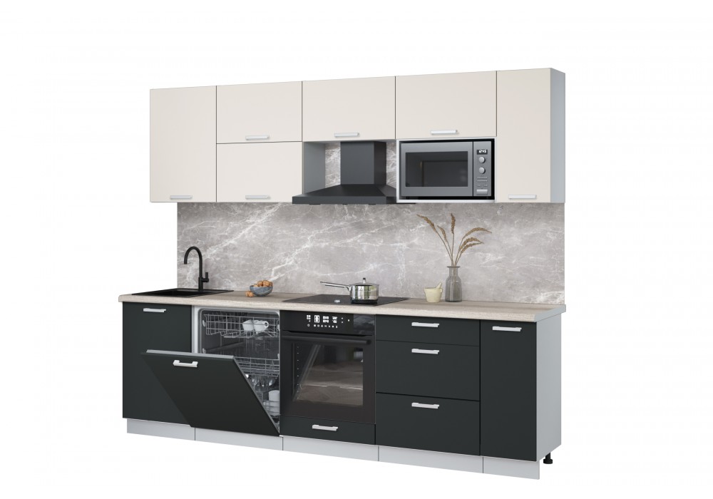 Кухонный гарнитур Мила Лайт 2,6-ПМ2 (Персидский жемчуг/Антрацит/Травертин) фабрика Интерлиния