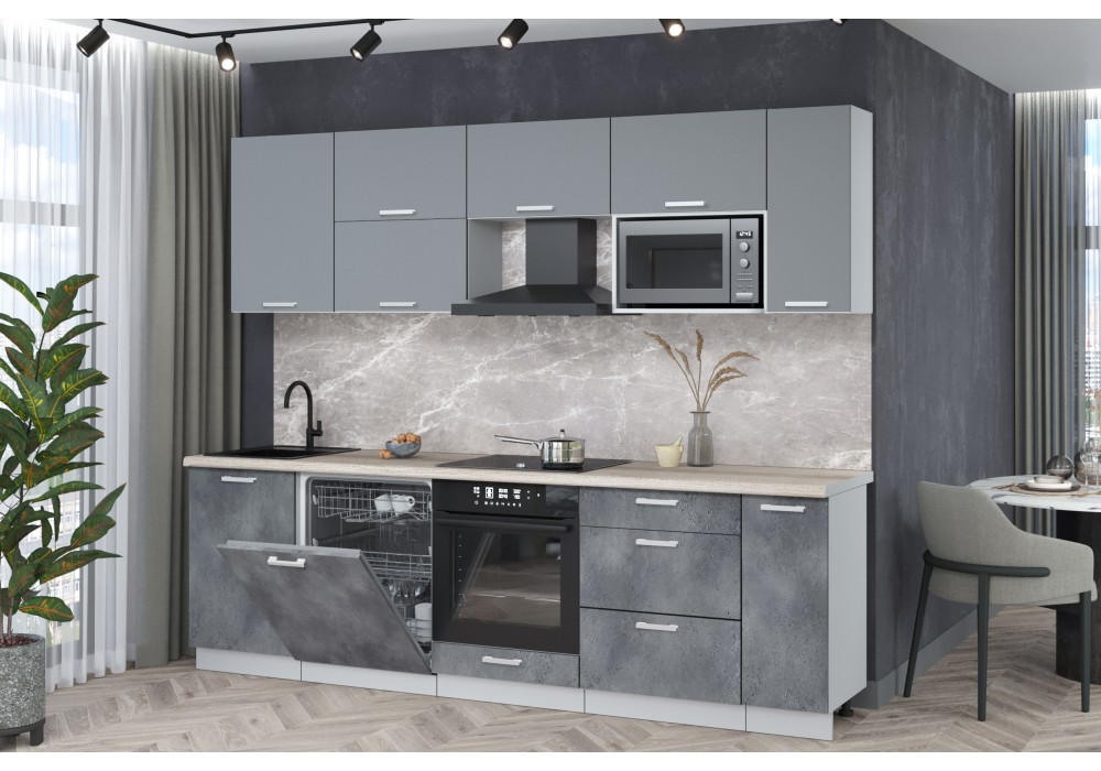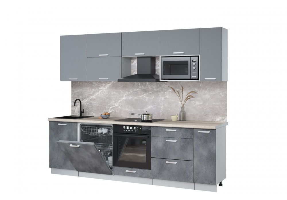 Кухонный гарнитур Мила Лайт 2,6-ПМ2 (Серебро/Бетон портленд/Травертин) фабрика Интерлиния