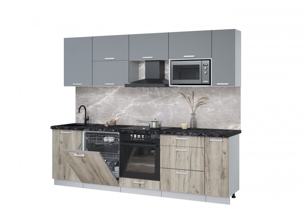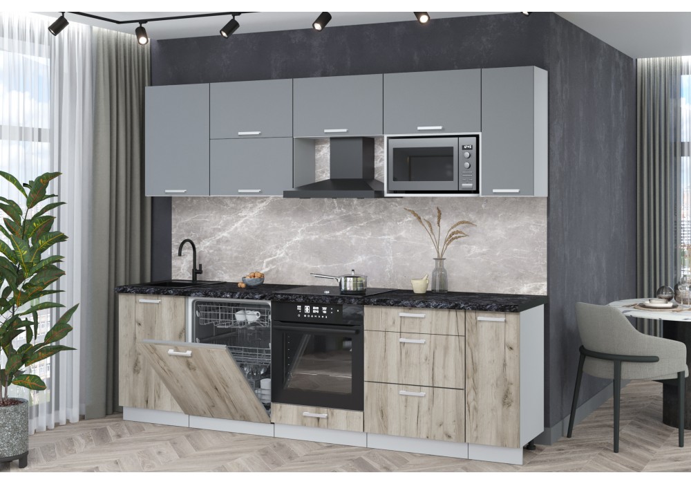 Кухонный гарнитур Мила Лайт 2,6-ПМ2 (Серебро/Дуб серый/Кастилло темный) фабрика Интерлиния