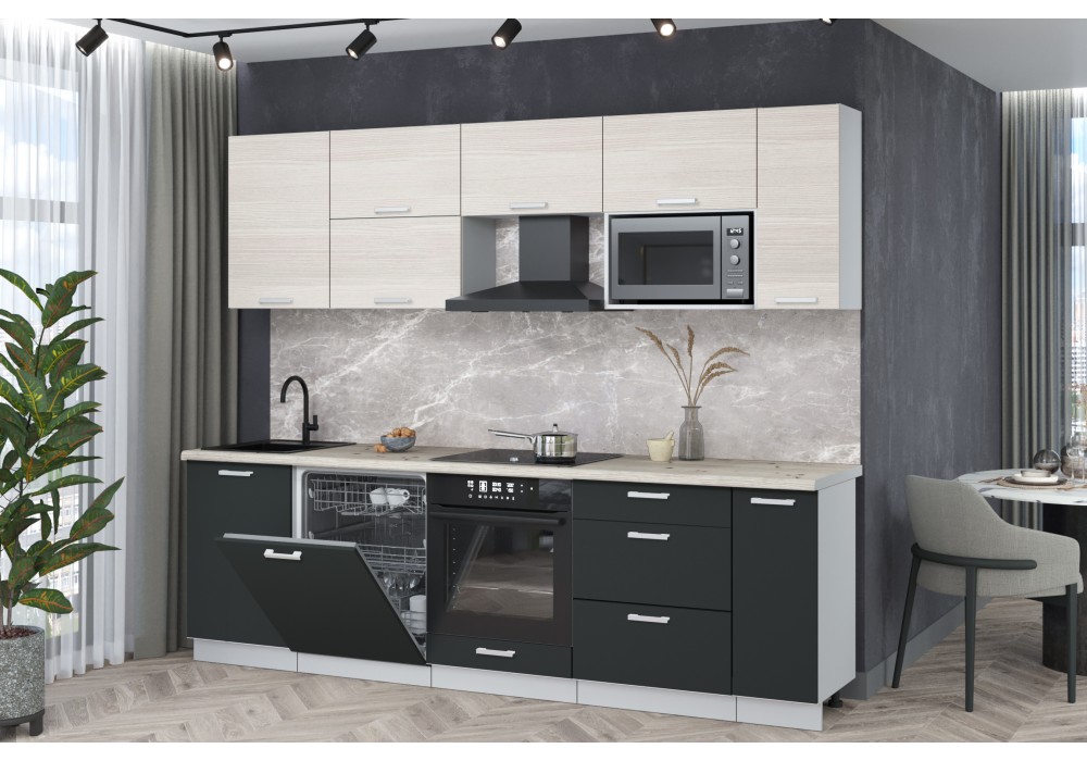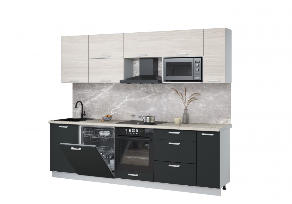 Кухонный гарнитур Мила Лайт 2,6-ПМ2 (Вудлайн кремовый/Антрацит/Сосна бискайская) фабрика Интерлиния