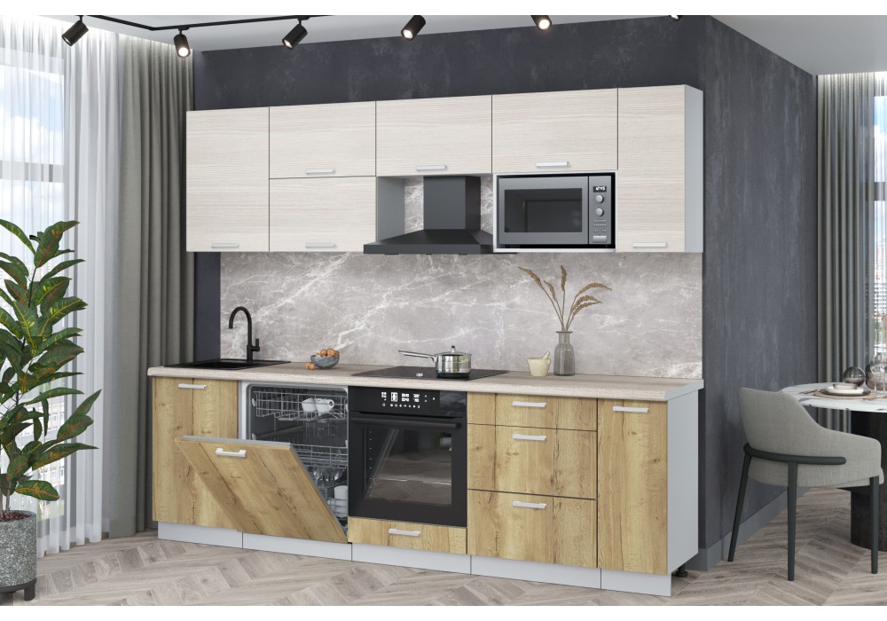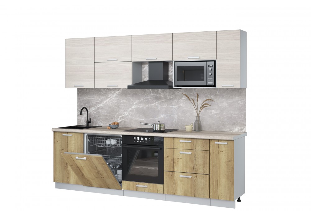 Кухонный гарнитур Мила Лайт 2,6-ПМ2 (Вудлайн кремовый/Дуб золотой/Травертин) фабрика Интерлиния
