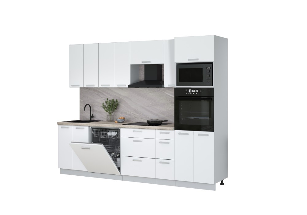 Кухонный гарнитур Мила Лайт 2,7-ПМ1 (Белый Платинум/Белый Платинум/Травертин) фабрика Интерлиния