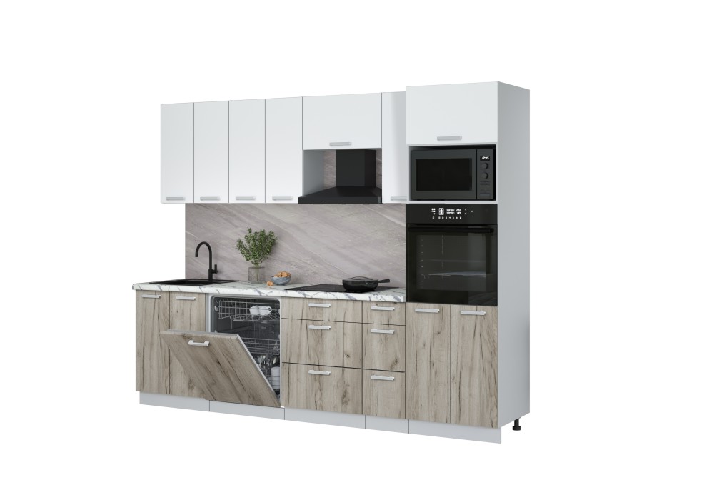 Кухонный гарнитур Мила Лайт 2,7-ПМ1 (Белый Платинум/Дуб серый/Гранит белый) фабрика Интерлиния