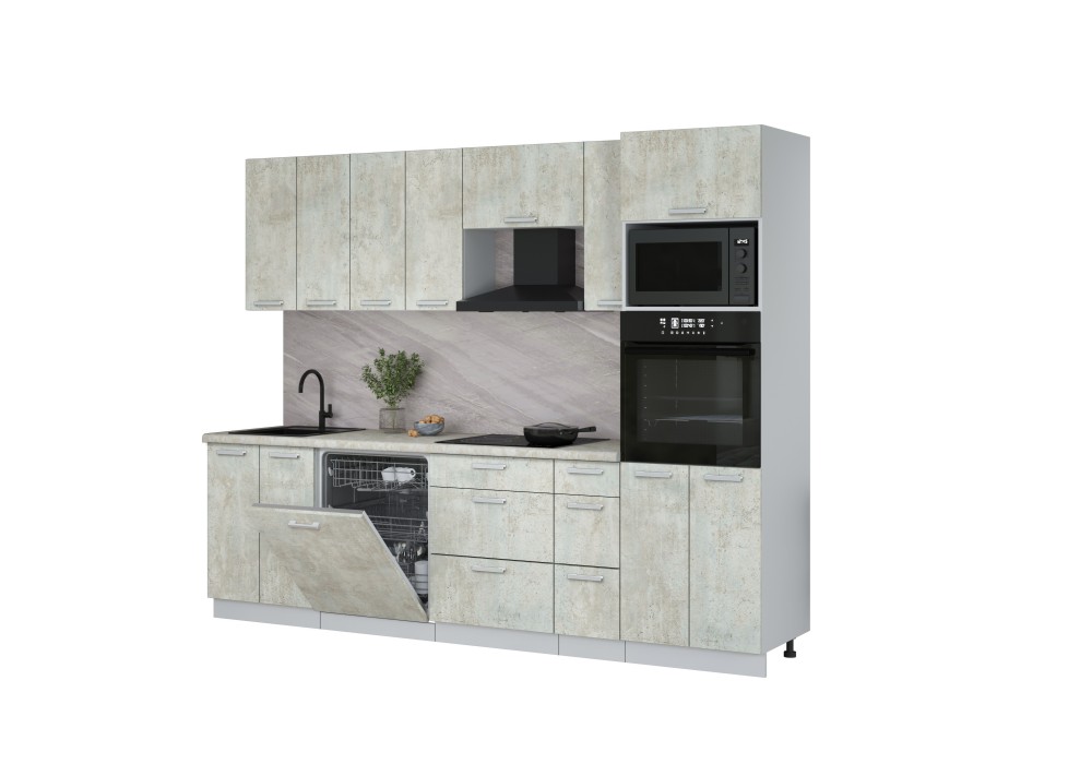 Кухонный гарнитур Мила Лайт 2,7-ПМ1 (Бетон лайт/Бетон лайт/Опал светлый) фабрика Интерлиния