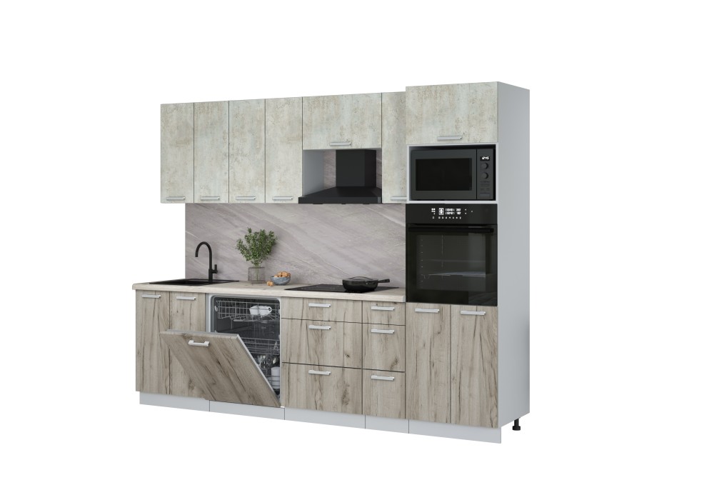 Кухонный гарнитур Мила Лайт 2,7-ПМ1 (Бетон лайт/Дуб серый/Сосна бискайская) фабрика Интерлиния