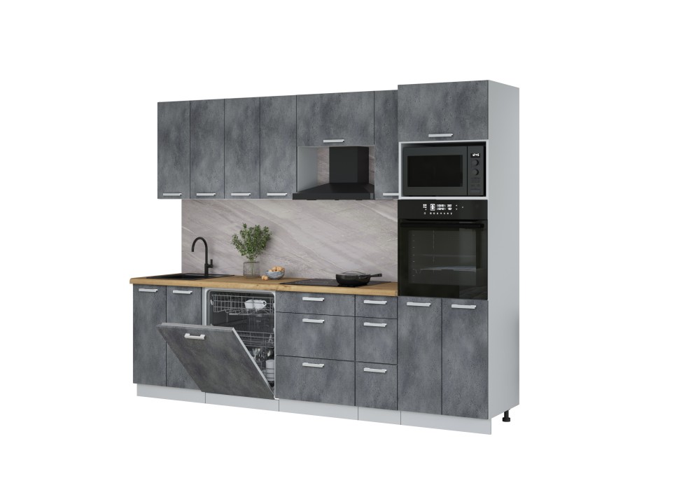Кухонный гарнитур Мила Лайт 2,7-ПМ1 (Бетон Портленд/Бетон Портленд/Дуб бунратти) фабрика Интерлиния
